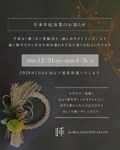 〜お知らせ〜年末年始のお休み🎍