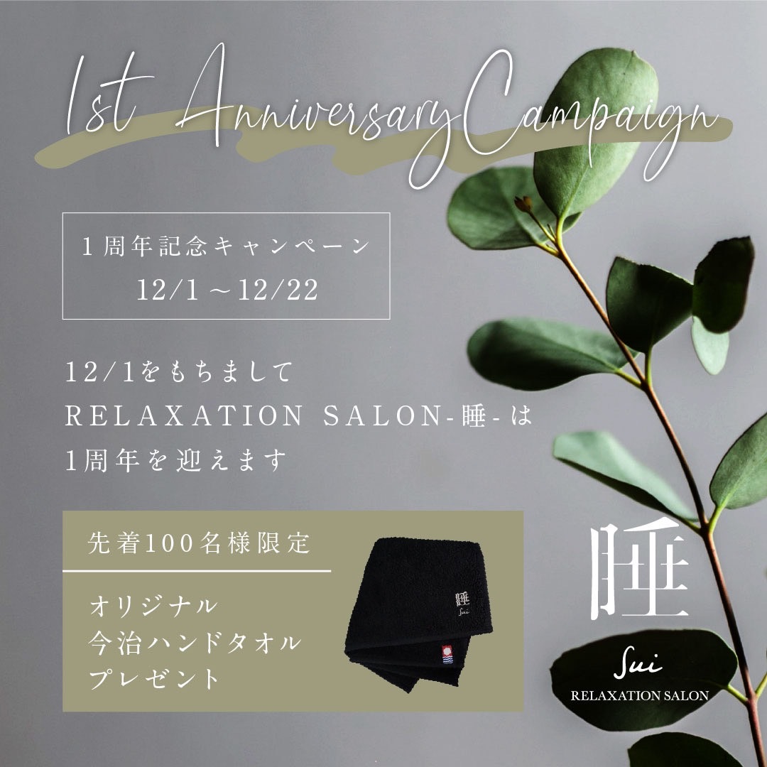 この度、RELAXATION SALON 睡-sui- は2023年12月1日に1周年を迎えることができます。